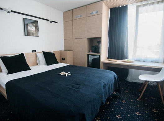 Dotări și servicii: recepție nonstop, restaurant, braserie, bar, terasă, grădină, camere pentru nefumători, family room, aer condiționat, încălzire, acces internet, lift, cameră de bagaje, programe de divertisment, ssalon TV, sală de jocuri, biliard, darts, centru spa și wellness (saună, masaj, baie cu aburi, cadă cu hidromasaj), piscină interioară, piscină exterioară, solar, loc de joacă, sporturi nautice, plajă privată, parcare.