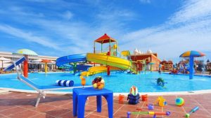 Facilități pentru copii: piscine, loc de joacă, mini-club (copii între 4-12 ani), babysitter (contra cost).
